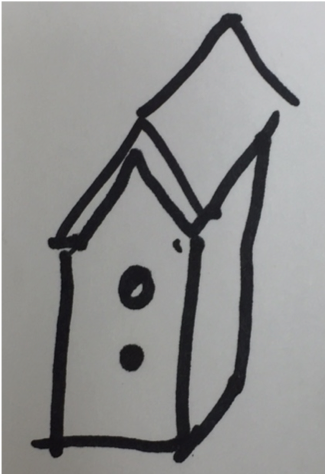One of Wayne’s many gifts is drawing; he is a master of using it to communicate. (See Figure 1: Bird Girl Sculpture; Figure 2: Birdhouse; and Figure 3: Mosaic-Tiled Project.) The first drawing that Wayne made during a conversation was a stick depiction of himself swinging a golf club, accompanied by a number (76, I think) indicating his golf score that day. In under a minute, he communicated more using that picture than 20 minutes of groping for words and answering my questions.
